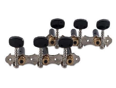 Clavijas originales para las series Manuel Rodríguez Ecología y Tradicíon, aptas para todos los modelos de 1/4-4/4. sin lira, niquelado, con ejes y mangos negros ejes: Distancia 35 mm, diámetro 10 mm, longitud 32 mm. or...